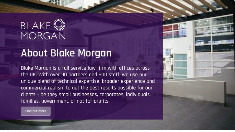Blake Morgan is a full service law firm with offices across the UK. With over 90 partners and 500 staff, we use our unique blend of technical expertise, broader experience and commercial realism to get the best results possible for our clients – be they small businesses, corporates, individuals, families, government, or not-for-profits.